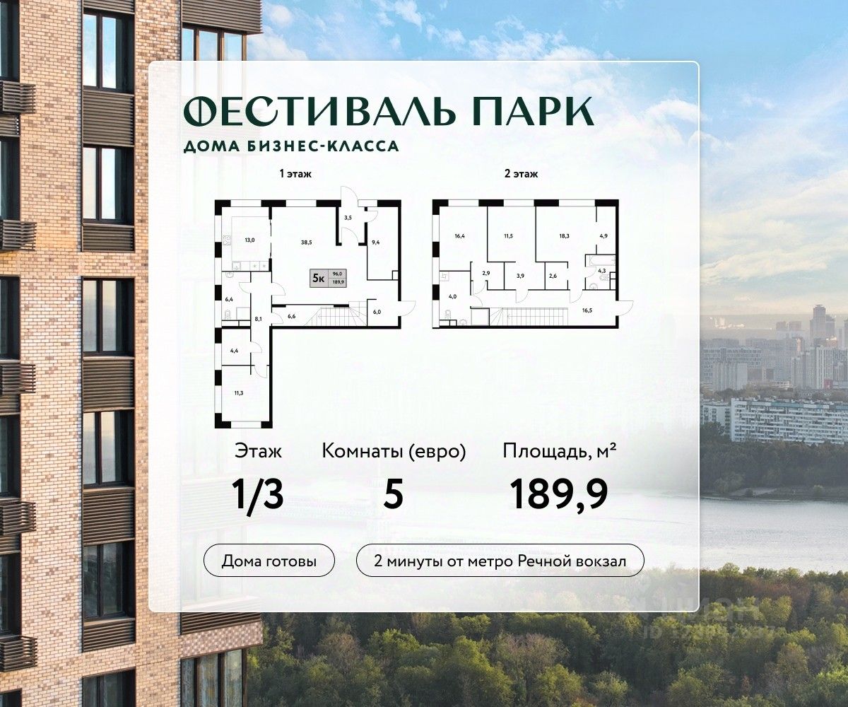 "Фестиваль Парк" это продуманный до мелочей жилой комплекс, окруженный зелеными парками и живописными прудами. Настоящая мечта, которая стала реальностью. ЖК "Фестиваль Парк" разместился в престижном Левобережном районе Москвы в двух минутах ходьбы от метро "Речной вокзал". Это одно из лучших мест столицы с точки зрения экологии - вокруг домов разбиты парки и скверы. В пешей доступности от комплекса находятся Парк Дружбы, Фестивальные пруды и набережная Химкинского водохранилища. Преимущества: Панорамные виды из окон Жизнь в окружении парков и водоемов Эффектная современная архитектура Стильные авторские лобби Закрытый благоустроенный двор без машин 2х уровневый подземный паркинг Рядом 25 детских садов, 12 школ Транспортная доступность: 2 мин. до м. Речной вокзал (200 м) 5 мин. до Ленинградского шоссе (650 м) 8 мин. до МКАД (7 км) 13 мин. до ТТК (13 км) 17 мин. до Садового кольца (17 км) 20 мин. до аэропорта Шереметьево (15 км) 8 мин. до ТЦ Метрополис (7 км) 10 мин. до ИКЕА, Мега (9 км) 12 мин. до ТЦ Авиапарк (11 км)