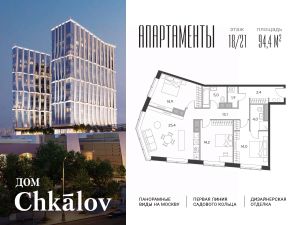 Продаются готовые 3-комнатные апартаменты с отделкой площадью 94.4 м² на 18 этаже в премиальном апарт-комплексе "Дом Chkalov" от девелопера IKON Development. Дом сдан, идет выдача ключей.