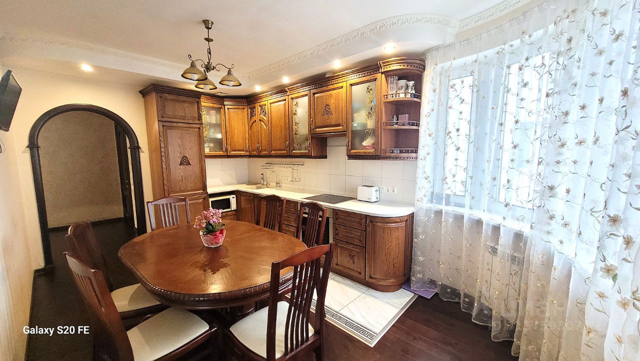 В квартире выполнен Евроремонт в классическом стиле из дорогих импортных материалов: на полу уложен паркет из натурального дерева (цвета Венге), итальянские обои и плитка, сантехника пр-ва Испания, в квартире установлены стеклопакеты и кондиционеры.