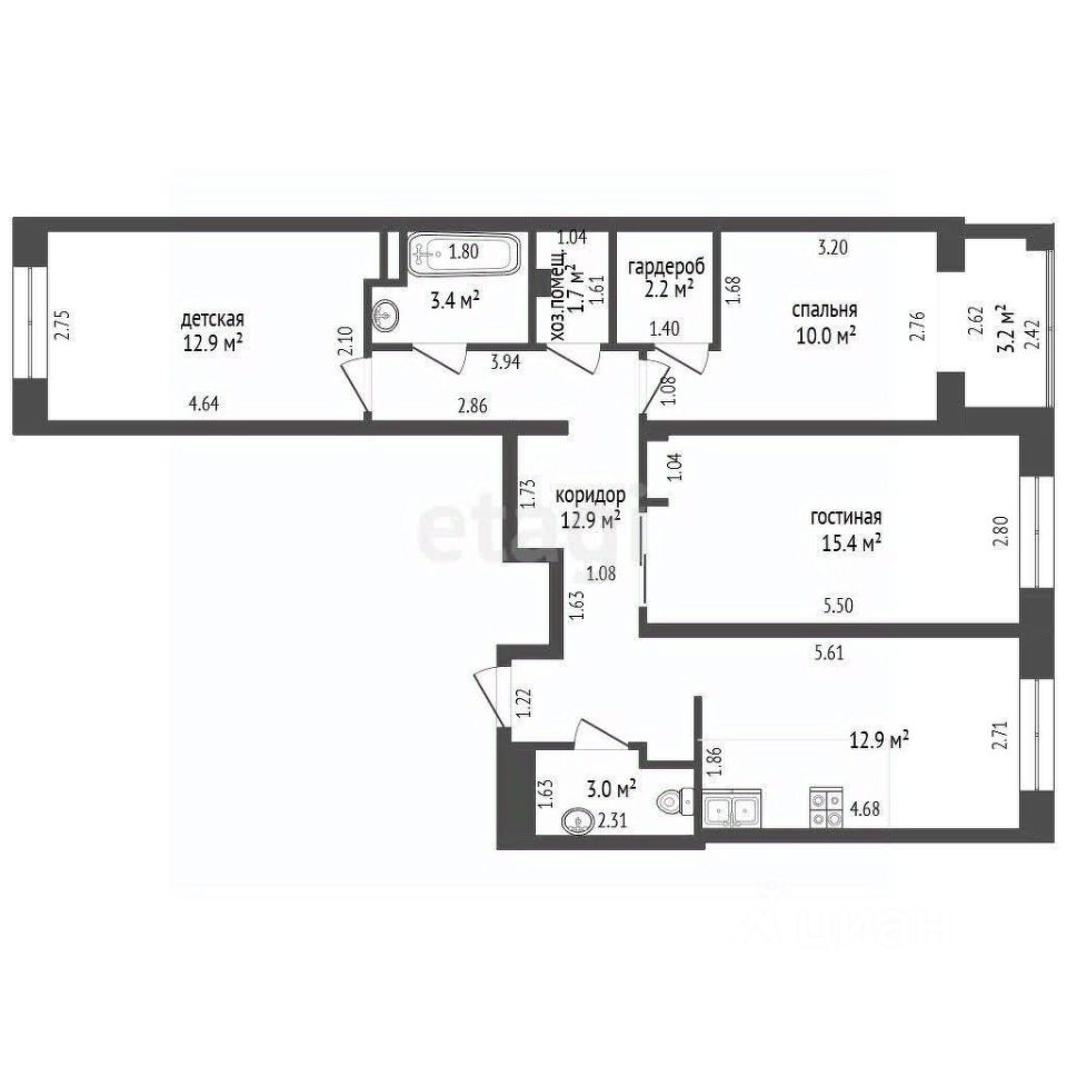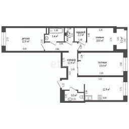Просторная 3х-комнатная квартира с удобным планировочным решением, которая включает в себя просторную кухню, 3 изолированные комнаты, 2 санузла, гардеробная и кладовая