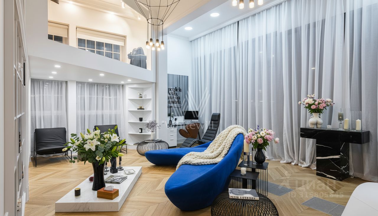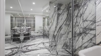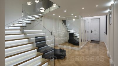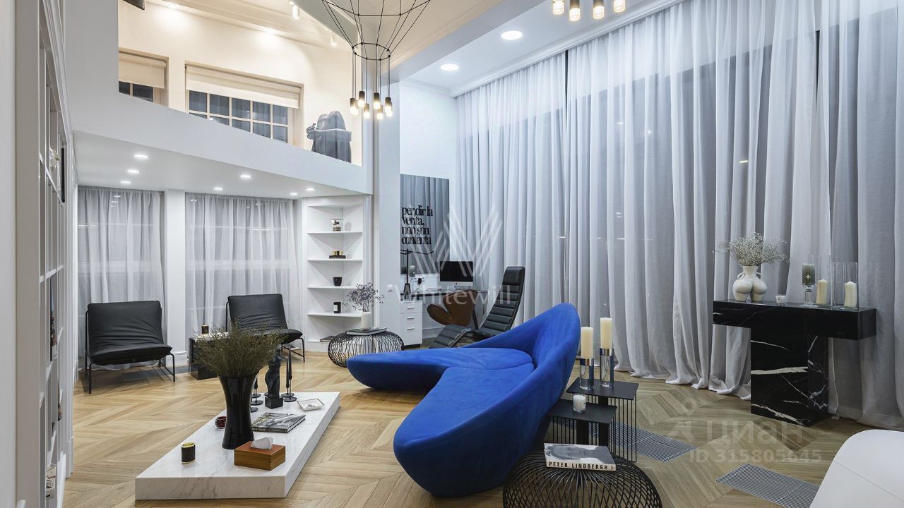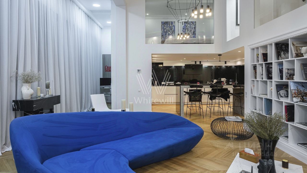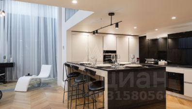 Спланированы просторная кухня-гостиная со вторым светом, мастер-спальня со своим санузлом и гардеробной, четыре спальни, четыре санузла и холл. Благодаря панорамному остеклению и высоким потолкам пространство наполнено светом, открываются виды на благоустроенную территорию комплекса.