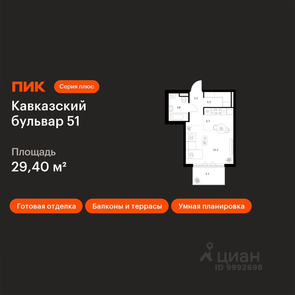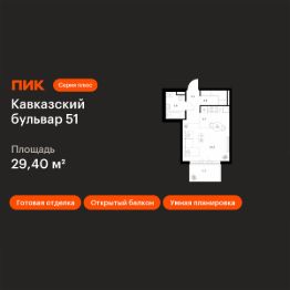 Продаётся квартира-студия площадью 29,4 кв.м на 20 этаже 23 этажного дома (Корпус 3.1, Секция 1) проекта ПИК Кавказский бульвар 51. Светлый просторный подъезд на уровне земли, функциональная планировка, большие окна, c отделкой.