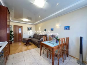 Квартира в отличном состоянии. Действительно комфортная планировка. 20-ти метровая кухня-гостиная с дорогой качественной мебелью и три изолированные спальни. Есть отапливаемая лоджия с видом во двор. Окна, батареи заменены, полы с подогревом, кондиционер в гостиной. Окна выходят на две стороны, где располагаются отличные детские и спортивные площадки с тренажерами, настольным теннисом и футбольным полем. Квартира очень солнечная и светлая:)