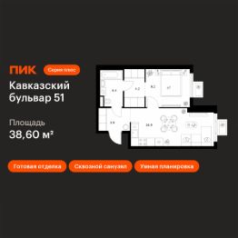 Продаётся 1-комн. квартира площадью 38,6 кв.м на 9 этаже 23 этажного дома (Корпус 3.1, Секция 1) проекта ПИК Кавказский бульвар 51. Светлый просторный подъезд на уровне земли, функциональная планировка, большие окна, c отделкой.