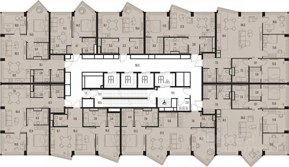 2-к квартира квартира в премиальном комплексе HIGH LIFE на 34-м этаже в 39 этажном здании. Общая площадь 61.1 кв. м.