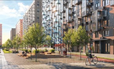В квартале — монолитные дома комфортной высоты, от 10 этажей. Светлые фасады украшают кирпичные вставки в теплых природных оттенках.