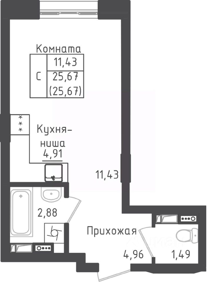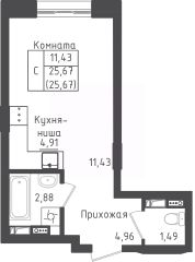 Продаётся студия в строящемся доме (Дом 1), срок сдачи: I-кв. 2026, общей площадью 25.67 кв.м., на 2 этаже. Квартал жилой застройки "Зеленый Оазис-Город"