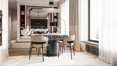 Квартира сдается с чистовой отделкой в стиле New Art Deco warm base и кухонным гарнитуром.