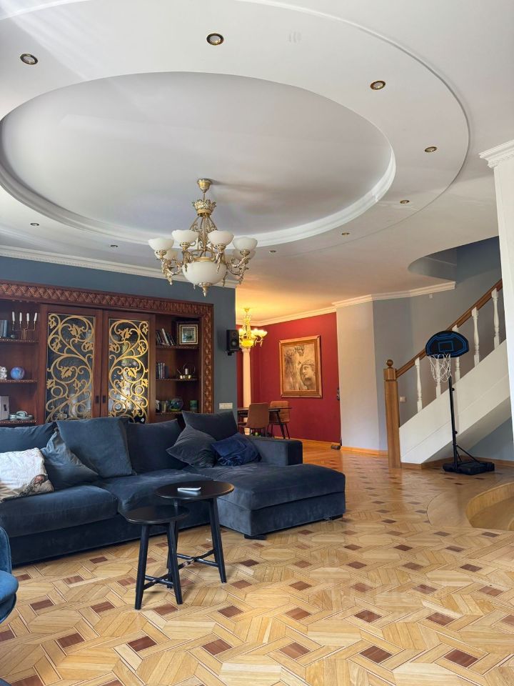 На цокольном этаже гардеробная, комната отдыха, санузел,сауна, гараж и подсобные помещения. Дизайнерский ремонт выполнен с использованием качественных материалов, квартира укомплектована мебелью и техникой, по договорённости можно будет оставить новым владельцам. Своя огороженная территория с системой видеонаблюдения. Под окнами разбит собственный сад с альпийской горкой, с различными сортами сирени, березы и ели. Выход из квартиры на лес, с прогулочной территорией, детскими площадками, искусственными водопадами , морскими черепахами и рыбами в летний период. Тупиковый проезд, полное отсутствие дорожного шума, только пение птиц и цоконье белок, за которыми можно наблюдать из окна. Постоянное наличие свободной парковки.