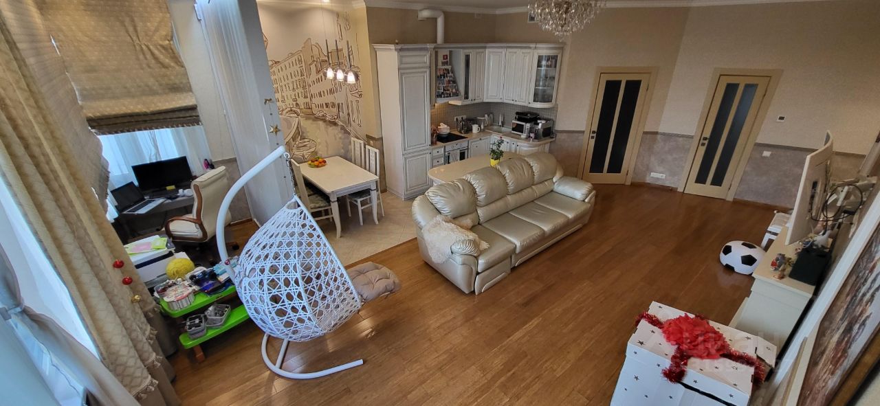 Апартаменты спланированы известным дизайнером интерьеров. В них входят: Кухня-гостиная, с выделенной рабочей зоной, мастер-спальня (со своей отдельной ванной комнатой), детская спальня, кабинет, гостевая комната (можно использовать под гардеробную), санузел с душевой, большая прихожая со встроенным шкафом. Высота потолка 3,3 метра, что придаёт помещениям воздушности. Установлена Сплит-система. Две ванные комнаты.