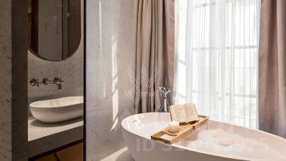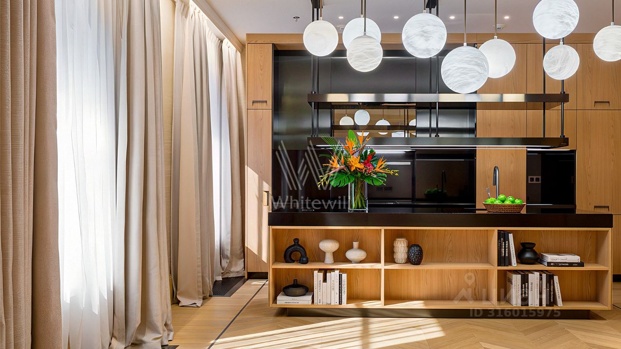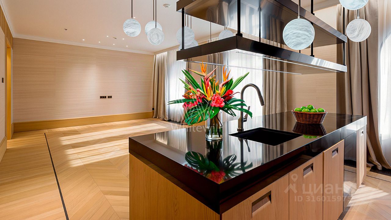 Просторная квартира с одной спальней в комплексе делюкс-класса STELLA DI MOSCA. Квартира площадью 108 м² расположена на втором этаже. Выполнен дизайнерский ремонт от итальянского архитектурного бюро Antonio Citterio Patricia Viel. В интерьерах использованы натуральные материалы — дерево, камень, кожа. На стенах текстильные обои, на полу выложены плитка с подогревом и паркетная доска.