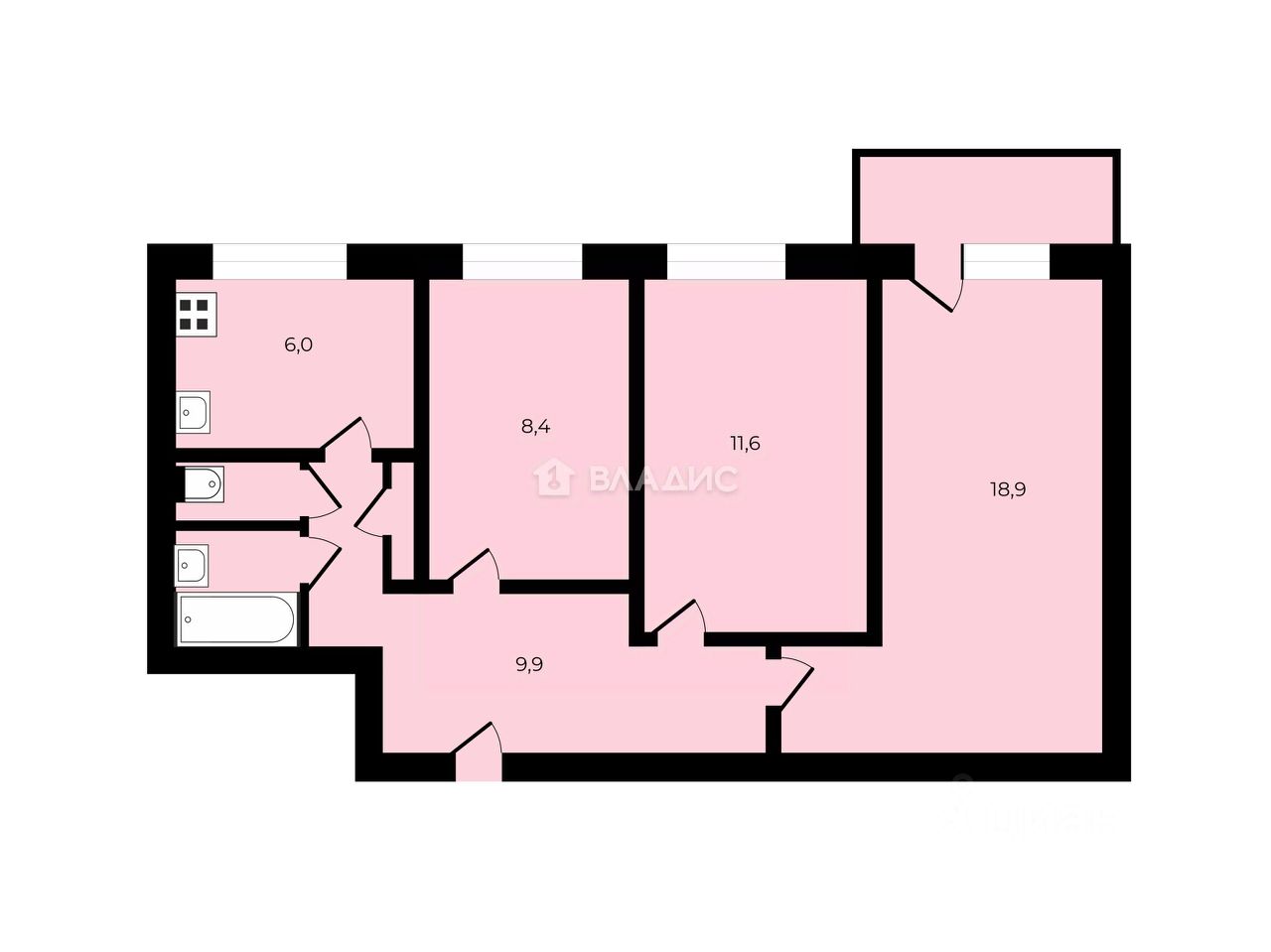 59,1 м²