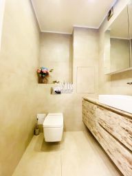 Продается четырёхкомнатная квартира с евроремонтом по ул Татьянин Парк д 15 корп 2 в ЖК Татьянин Парк Западного округа Москвы. Квартира расположена на 13 этаже 17 этажного монолитно-кирпичного дома, построенного в 2017 г. Квартира с интересной и функциональной планировкой, общей площадью с учетом холодных помещений 115кв.м, жилая 80кв.м. Два санузла. Три комнаты изолированные, распашонка: 20-15-15кв.м с прекрасным панорамным видом из окон на три стороны дома: на тихий двор и на озеро. Просторный зал (30кв.м) с тремя окнами, объединён с кухней-гостиной 20кв.м. Гостиная оборудована встроенным кухонным гарнитуром, бытовой техникой (эл варочная панель, вытяжка Elikor, духовой шкаф, посудомоечная и стиральная машинка фирмы Miele). В большой спальне два окна с завораживающим видом на озеро. Небольшая комната украшена красивым цветочным панно у изголовья кровати. 1 санузел 7кв.м облицован бежевой плиткой, с ванным гарнитуром, большой душевой зоной со стеклянной перегородкой , подвесным биде и унитазом. Гостевой санузел 3кв.м отделан плиткой в светло-серых тонах, с нишами в стене, подвесным унитазом и умывальником. Просторный холл 10кв.м со встроенным шкафом с красивой зеркальной поверхностью. В квартире выполнен отличный ремонт в светлых тонах из качественных строительных материалов: установлены стеклопакеты; кондиционеры; в комнатах вертикальные радиаторы отопления; двойные фигурные потолки с ленточной подсветкой и точечными светильниками; красивые белые межкомнатные двери с позолоченными ручками; установлена система теплых полов; на полу в комнатах паркетная доска; на кухне, в санузлах и в коридоре плитка; в комнатах - встроенные шкафы изготовлены на заказ; входная антивандальная железная дверь, домофон с видеонаблюдением. Без балкона. Высота потолков 3м. Кадастровый 77:17:0110502:3867. Тамбур на 4 квартиры с железной дверью. Отличная, просторная входная группа подъезда, 2 лифта (пассажирский и грузовой), место для консьержа. Благоустроена территория дома, большое количество наземных парковочных мест, рядом подземный паркинг, современные детские и спортивные площадки. Квартира расположена в одном из лучших корпусов комплекса. Развитая инфраструктура района, рядом школа, гимназия, д/сады, поликлиника, аптеки, салоны красоты, банки, магазины, рестораны, ТЦ, фитнес клуб с бассейном. В шаговой доступности пруд с зонами отдыха, православный храм, Говоровский лес, Мещерский парк. Хорошая транспортная доступность. Удобный выезд на МКАД, Боровское шоссе. До метро Говорово 3 минут пешком, не далеко ж/д станция Мещерская. 1 собственник, свободная продажа!