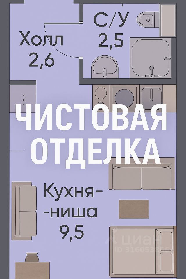 Студия - отделка чистовая — заезжай и живи, окна выходят в сторону школы (не проезжая часть).