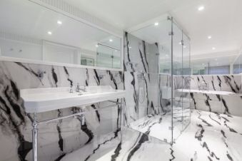 Профессиональная КУХНЯ Novikov group, немецкая фурнитура Hettich. Камень для столешницы кухни и обеденного стола из натурального гранита, на обеденном столе - подложки из натурального мрамора. Встроенная бытовая техника премиального класса - плита, духовой шкаф, холодильник, посудомоечная машина (Miele, Libherr,) винный шкаф (CASO WineDeluxe). САНТЕХНИКА премиум класса: Burlington, Devon&Devon. В санузлах мрамор и керамогранит производства Италии и Франции по индивидуальным эскизам.