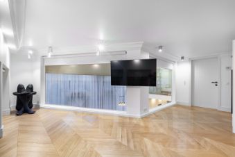 Предлагаем к продаже двухуровневую 6-ти комнатную квартиру площадью 305 кв. м. с авторской отделкой и мебелью в стиле ар деко в доме премиум класса ЖК Садовые Кварталы.