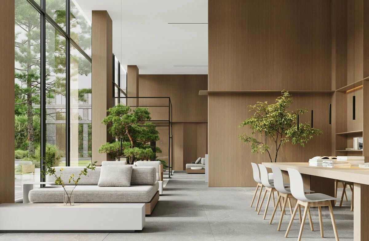 Концепция Moments - архитектура для жизни в моменте. Застройщик привлёк для создания архитектурного облика одно из ведущих бюро KAMEN ARCHITECTS. Отделка лобби в светлых тонах с использованием природных материалов. Высота потолков до 5,7 метров. А также в комплексе предусмотрены консьерж сервис, зоны лаунж и коворкинга, колясочные комнаты, лапомойки для питомцев, двухуровневый подземный паркинг. Установлены современные системы видеонаблюдения.