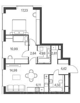 Квартира с двумя спальнями 67,56 кв.м в жилом комплексе Бизнес-класса Moments.