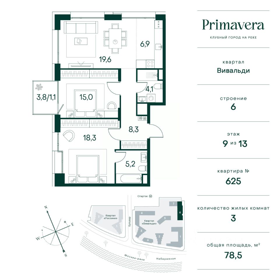 Клубный город на реке Primavera — это современный жилой комплекс премиум-класса, расположенный на первой береговой линии Москвы-реки в экологически чистом районе Покровское-Стрешнево. Под панорамными окнами квартир находится собственный экопарк с продуманной сетью прогулочных дорожек и современными детскими и спортивными площадками. За парком расположена набережная с собственным пляжем и зонами для отдыха. Клубный город на реке Primavera предлагает широкий выбор планировок для различных жизненных сценариев: от просторных однокомнатных квартир до пентхаусов и жилых помещений с террасами и патио. Выберите из 120 вариантов эргономичных планировок стандартного и евроформата. Из каждой квартиры открываются красивые виды на реку с углом обзора в 270 градусов. Дизайнерские лобби предлагают панорамный обзор на благоустроенный двор. Высокие потолки в 6 метров и качественная отделка создают атмосферу, схожую с пятизвездочными отелями. В Primavera есть всё необходимое для комфортной жизни в мегаполисе: • Образование для детей в шаговой доступности: 4 школы, 8 детских садов и развивающие центры с кружками и секциями. • Удобства на расстоянии приятной прогулки: супермаркеты, кафе, рестораны с верандами, салоны красоты, аптеки и многофункциональный центр для шоппинга и развлечений. • Умный дом: автоматизированное бесконтактное управление основными системами доступа и безопасности через мобильное приложение. Клубный город на реке Primavera выгодно сочетает комфорт городской жизни с близостью к природе. Живите в месте, где все создано для вашего удобства!