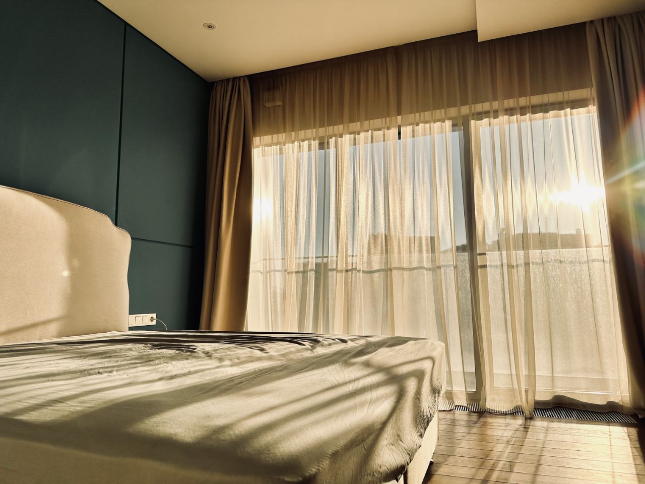 Апартамент находится на 10-ом этаже и включает кухню-гостиную, мастер-спальню и санузел с душевой кабиной.