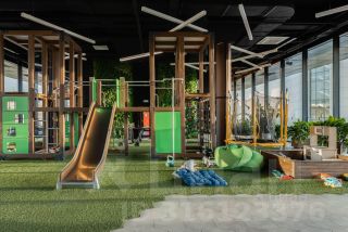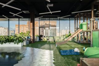 На 7м этаже находится общественное пространство Sky Garden: Зимний сад, открытая терраса по периметру здания. В пространстве можно заняться спортом, поиграть в шахматы, теннис, есть детская площадка, коворкинг и зона отдыха с библиотекой. Ваш личный клуб внутри дома.