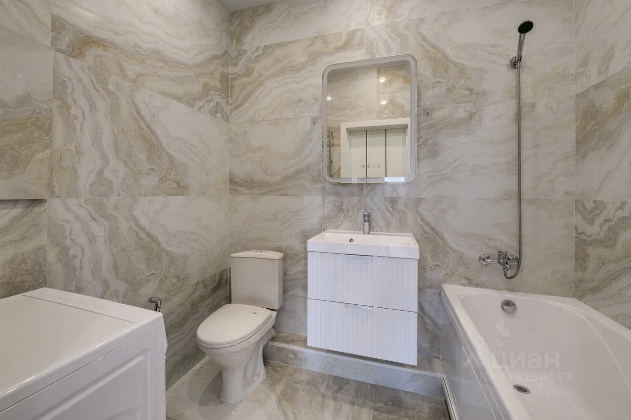 В апартаментах выполнен качественный ремонт в светлых тонах, установлен кухонный гарнитур и бытовая техника. Совмещенный санузел оборудован сантехникой и стиральной машиной. Планировка включает в себя изолированную спальную комнату и кухню-гостиную. Все окна выходят на Восток.