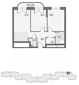Уважаемые покупатели! Предлагается в продажу элеганттая 2-комнатная квартира,которую вы сможете использовать как полноценную 3-комнатную квартру евро планировки,благодаря шикарной по площади кухни-гостиной площадью почти 22 кв.м.