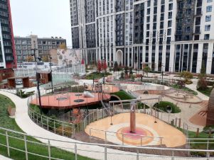 Благоустройство: на закрытой территории дома есть ландшафтный двор, Clubhouse с клубной гостиной, детской комнатой и бесплатным фитнесом, игровая площадка для маленьких жителей и многофункциональная спортивная площадка с зоной work-out.