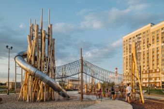 Дворы — приватные мини-парки без машин и посторонних. Кроме игровых площадок, для детей обустроили тематический плейхаб "Маяк". В будущем появятся плейхаб "Алиса в стране чудес", арт-объект "Тропа зеркал", а также большой ландшафтный парк.