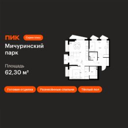Продаётся 2-комн. квартира площадью 62,3 кв.м на 2 этаже 24 этажного дома (Корпус 4.2, Секция 1) проекта ПИК Мичуринский парк. Светлый просторный подъезд на уровне земли, функциональная планировка, большие окна, c отделкой.