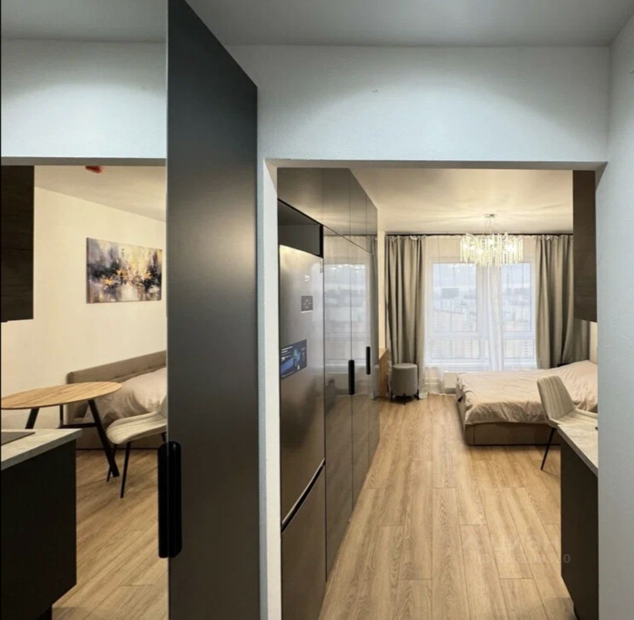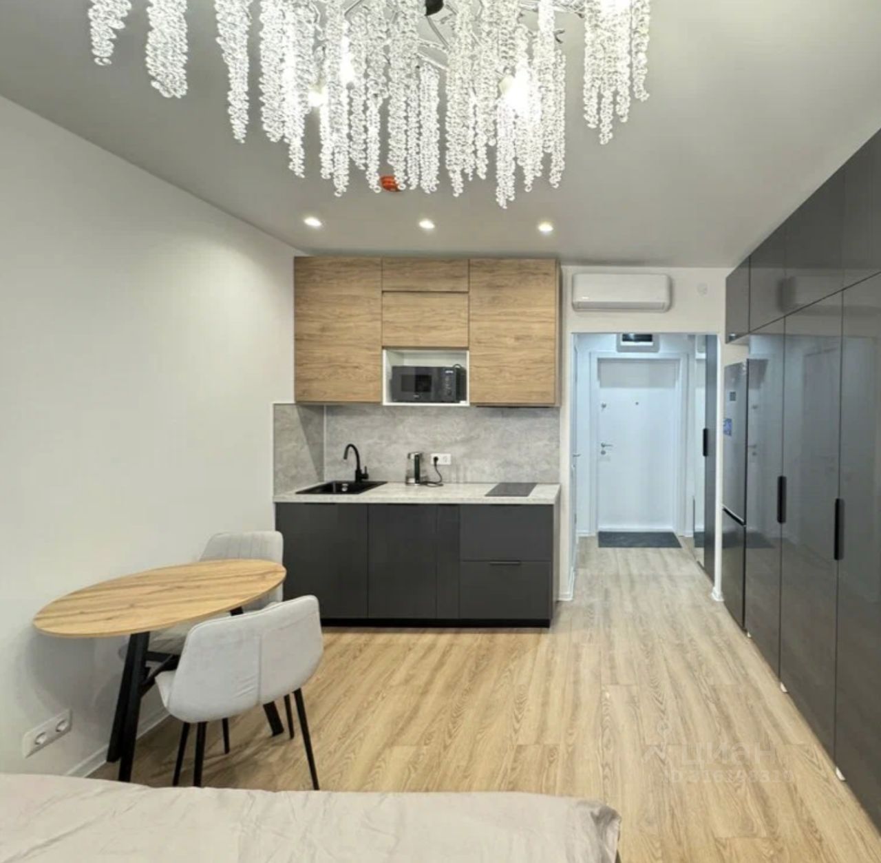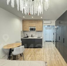 Предлагается стильная студия с современным дизайнерским ремонтом а в новом жилом комплексе Римского-Корсакова 11. Интерьер выполнен в приятных светлых тонах, создавая атмосферу уюта и простора.