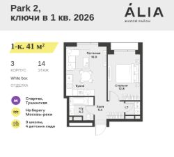 Продаётся 1-комнатная квартира 41 м². В жилом районе ALIA на 14-м этаже 28-этажного дома.