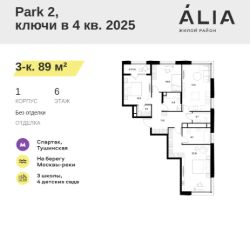 Продаётся 3-комнатная квартира 89 м². В жилом районе ALIA на 6-м этаже 22-этажного дома.