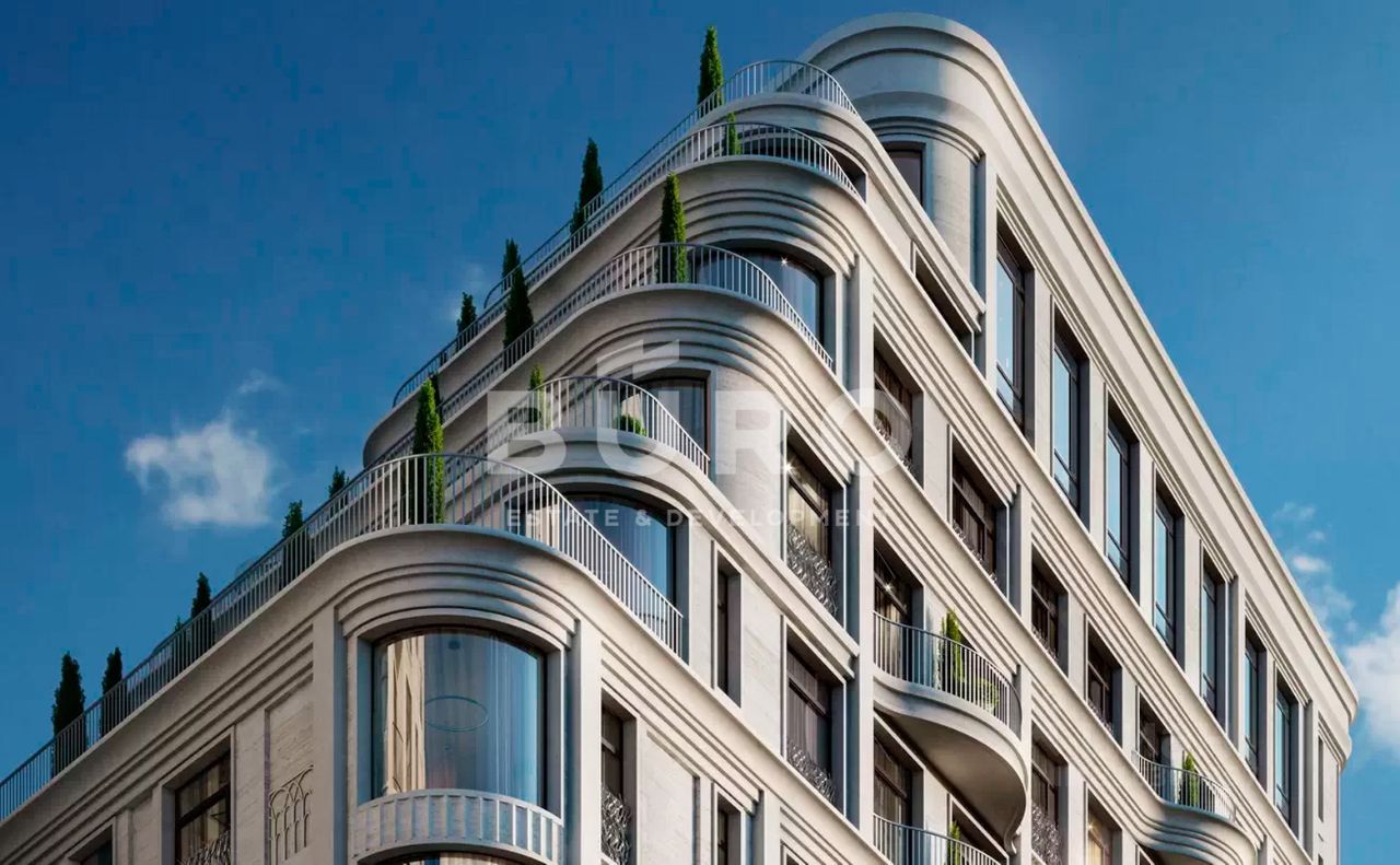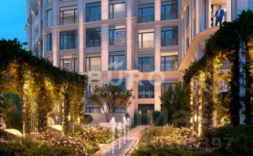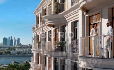 Фасады зданий облицованы натуральным гранитом и мрамором. Благородство силуэту фасада придают французские балконы, панорамные окна из моллированного стекла и авторский металлический декор. В доме спроектировано дизайнерское лобби, в котором есть детский клуб, фитнес-зал с сауной и хамамом, зона персонального тренинга, переговорные комнаты, репетиторский класс и бьюти-рум. Также предусмотрена дроп-офф зона.