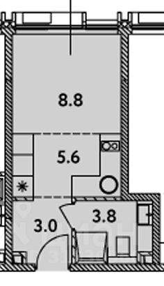 Продается квартира-студия на западе Москвы в 3 минутах от метро с высокими потолками в проекте бизнес-класса.