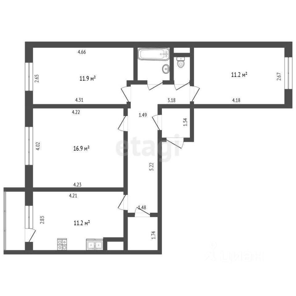 Планировка распашная - окна на восток и запад все во двор, комнаты изолированные, санузел раздельный, есть кладовка. Кухня 11м2 с выходом на балкон станет сердцем вашего домашнего очага.