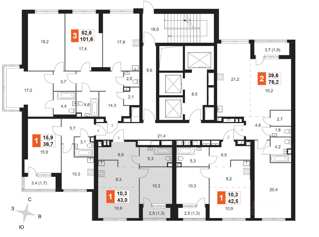 • Меньшая по этажности секция во всем ЖК, что уменьшает среднее время ожидания лифтов