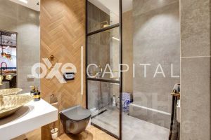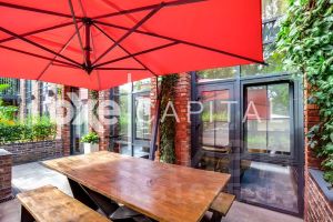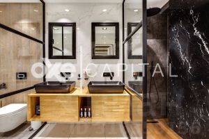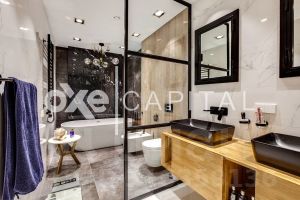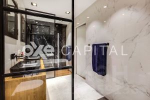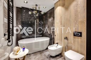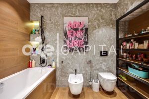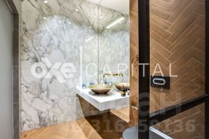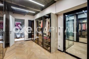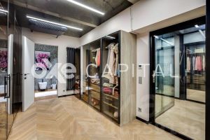 Площадь апартаментов составляет 180 кв метров, отделка выполнена с использованием высококачественных премиальных материалов. Планировка продумана до мелочей: на первом этаже располагается просторная кухня-гостиная и гостевым санузлом. На втором этаже мастер-блок и вторая спальня с кабинетом. Апартаменты с отделкой и имеют отдельный вход и летнюю террасу, что создает ощущение проживания в сити-хаусе.