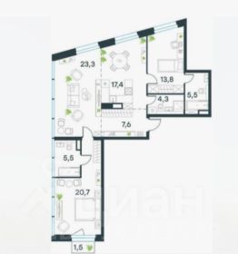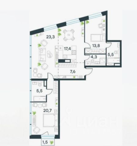 О квартире: просторная кухня-гостинная, 2 изолированные спальни, 3 совмещенных с/у.