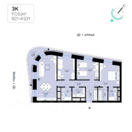 В продаже — трехкомнатная квартира с чистовой отделкой, общей площадью 117,62 кв. м. Квартира расположена на пятом этаже одинадцатиэтажной секции корпуса класса Адвансд в новом районе СберСити, который строит Сбер. Дом находится на второй береговой линии Москвы-реки.