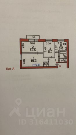 О квартире: общая площадь квартиры - 52,6кв.м. Площадь комнат: 12,5; 16,3 и 8,2