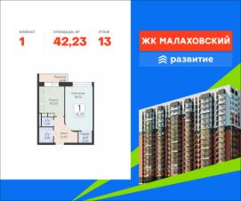 Продается 1-комнатная квартира площадью 42.23 . Квартира расположена на 13 этаже 17 этажного дома, в 202 корпусе.