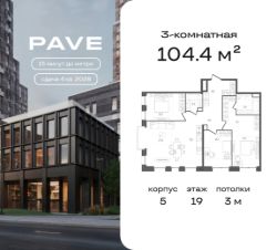 Продается 3-к. квартира квартира номер 506 общей площадью 104.4 кв.м. на 19-м этаже 21 этажного дома, 5. С отделкой White Box .