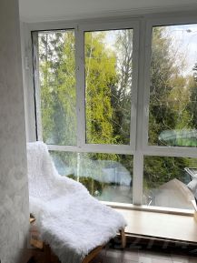 Квартира очень уютная ,теплая и светлая- окна выходят на солнечную сторону во двор, в лес ( нет шума и дороги).