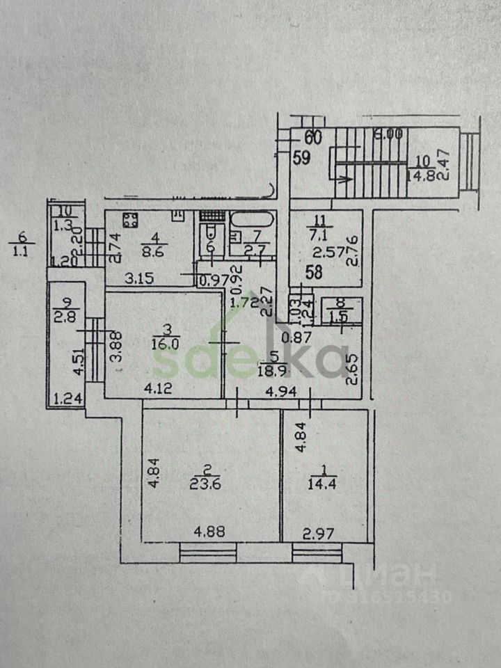 Площадь комнат23,6 м²