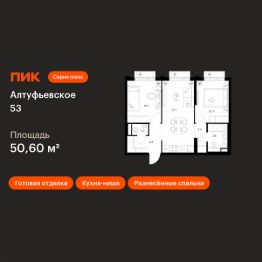 Продаётся 2-комн. квартира площадью 50,6 кв.м на 2 этаже 32 этажного дома (Корпус 1.1, Секция 4) проекта ПИК Алтуфьевское 53. Светлый просторный подъезд на уровне земли, функциональная планировка, большие окна, c отделкой.