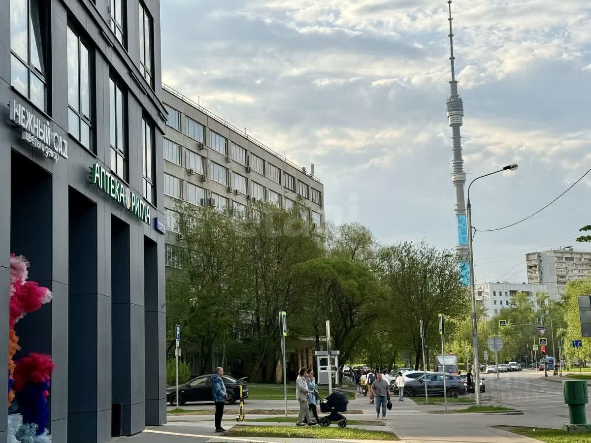 Расположение квартиры — это отдельная история. Она находится в тихом и зеленом районе Останкино, всего в 6 минутах на автомобиле от ТТК и в 17 минутах до Кремля. В 10 минутах пешком расположена станция метро "Алексеевская", а ближайшая остановка общественного транспорта находится менее чем в 200 метрах от вашего нового дома. Вокруг много парков и скверов: Звёздный бульвар, парк "Останкино", ВДНХ и "Сокольники" — идеальные места для прогулок и отдыха на свежем воздухе.