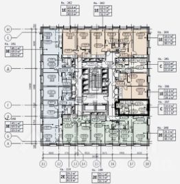 На поэтажке 2 корпуса видно, что квартира не граничит с санузлами соседних квартир и лифтами, что является преимуществом, во 2 корпусе на этаже только 2 студии, остальные квартиры большей площади, что также является преимуществом, в 1 корпусе больше студий на этаже и окна в окна, во 2 корпусе нет эффекта окна в окна.
