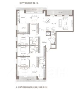 ПЛАНИРОВОЧНОЕ РЕШЕНИЕ: кухня-столовая-гостиная, мастер-спальня с собственной ванной комнатой, три спальни, две ванные комнаты, гостевой с/у, холл, три террасы. Из окон открывается вид на 2-й Спасоналивковский переулок и во двор. Пентхаус ориентирован на три стороны света.