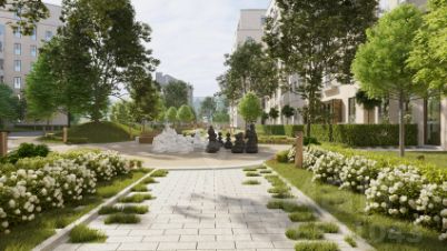 Во внутренней территории комплекса есть приватный сад площадью 0,8 га, ландшафтная концепция которого была разработана британским бюро Gillespies. В саду высажены сосны, липы, ели, берёзы, различные виды кустарников, цветов и трав, обустроены зеленые аллеи, лаунж-зоны, фонтан, ручей и детская площадка от немецкой компании Richter Spielgerae.